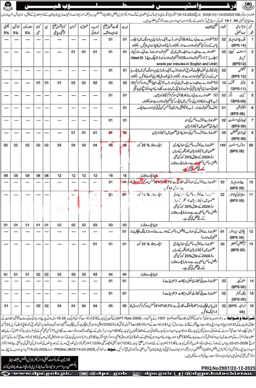 The Livestock depart of Balochistan has announced new job opportunities for 2026 in different areas of Balochistan. The job advertisement includes full details such as job positions, required education, experience, and other important requirements. Interested candidates should carefully read the advertisement and make sure they meet all the requirements before applying.