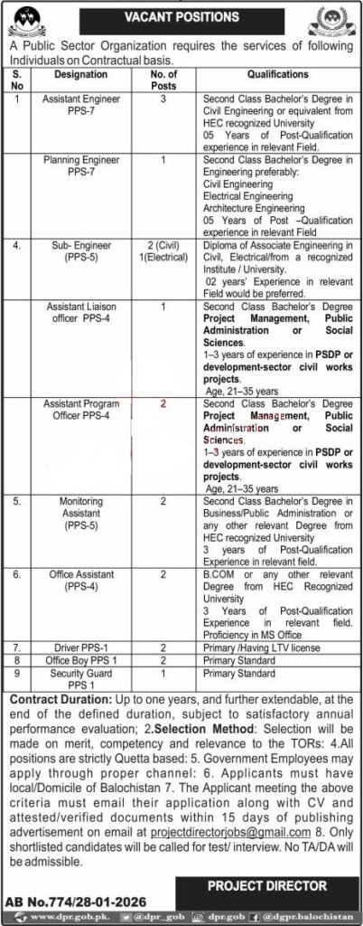 The Public sector oranization balochistan has announced these Latest New vacancies for 2026 through an official advertisement. The advertisement provides complete details, including job positions, required education, experience, and other important conditions. Candidates should carefully read the advertisement and confirm that they meet all the requirements before applying.